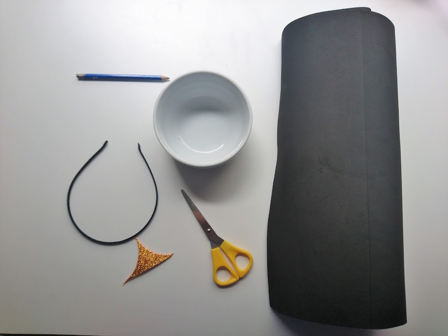 Para seguir, pasamos a hacer un gorro de bruja, de estilo tocado, para que no sea tan aparatoso en el caso de salir con él a la discoteca o a sitios en los que hace mucho calor y hay bastante gente. Usaremos lo siguiente: