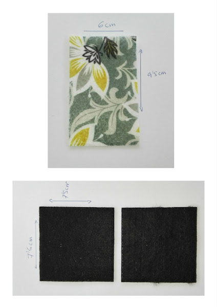 Para comenzar, marcamos en el fieltro la medida de las 3 partes ( una rectangular y dos cuadradas) que necesitamos para el montaje, y recortamos.