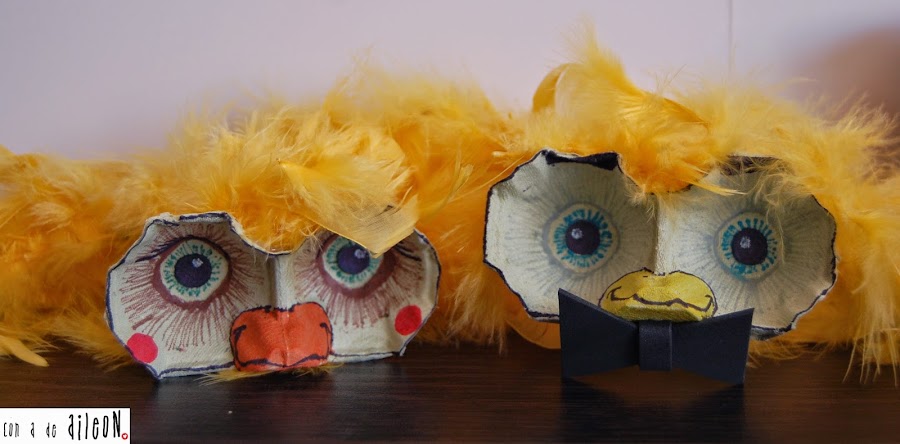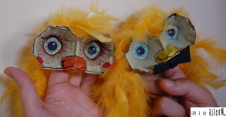 He hecho al Sr. Avestruz y a su Señora. Para tapar un poco la mano he añadido unas plumas que me sobraron en la máscara del león que hice hace unos meses (pincha AQUI por si te lo perdiste)