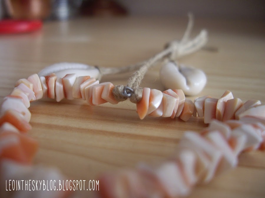 El collar que yo utilicé es uno de esos que venden en los típicos puestos de la playa y está hecho con trozos de conchas, así que se me ocurrió que le irían muy bien unas conchitas que me sobraron de una pulsera que hice hace tiempo (son compradas, pero bien podrían ser de las que te encuentras en la playa).