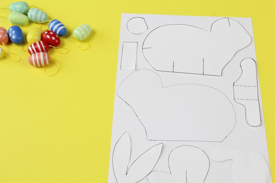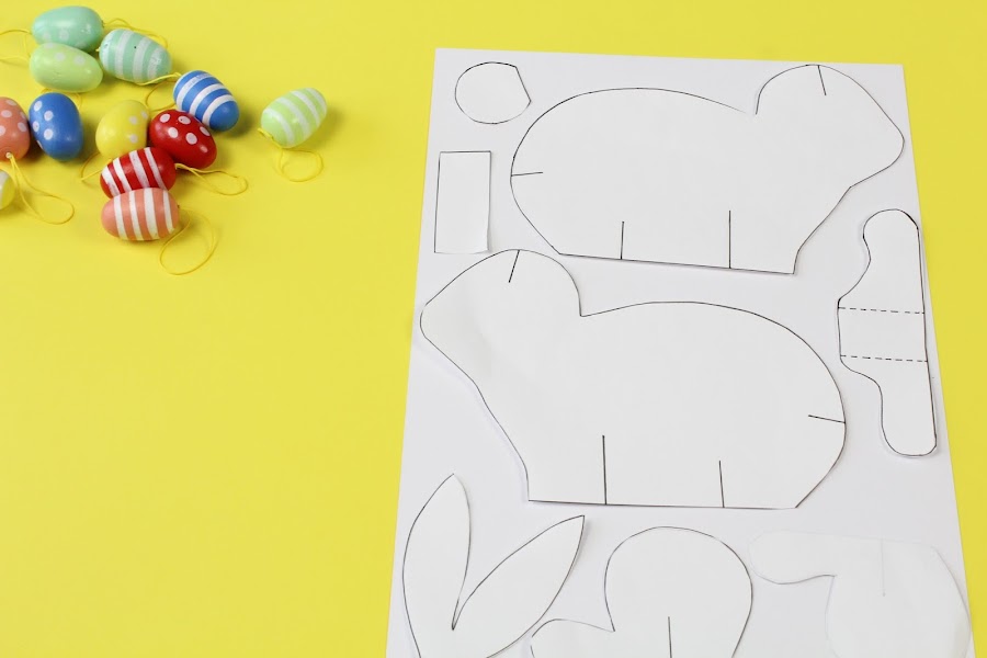 Una vez tengamos las piezas recortadas en la cartulina montaremos nuestro conejito 3D.