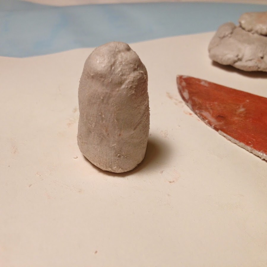 Lo primero que hay que hacer es separar un poco de arcilla y hacer con ella una pelota humectándola poco a poco con los dedos. A partir de ahí vamos trabajando la superficie con el cuchillo para que nos quede más alargado y con los bordes uniformes.
