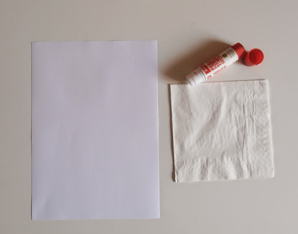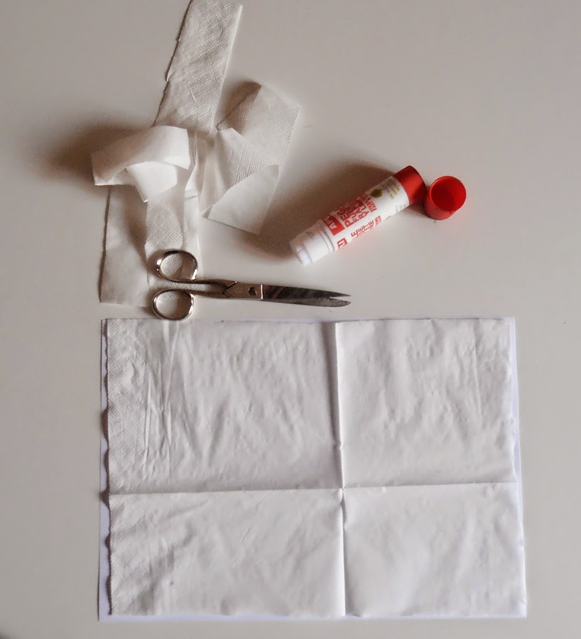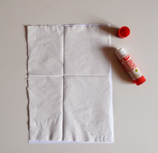 Necesitamos un folio, una servilleta de papel blanca y pegamento.