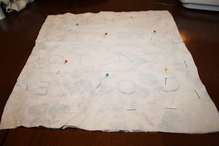 Yo quería conservar la frase completa que traía escrita la sudadera así que marqué alrededor. Acordaros que solo hay que coger la parte del delantero con alfileres.