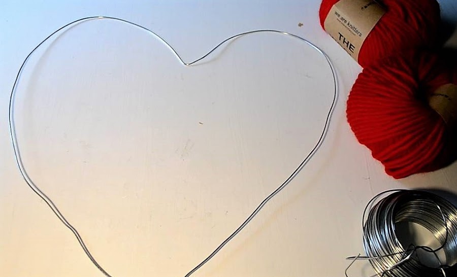 Lo primero que hacemos es cortar el alambre a una medida de 1.50 m y doblamos las puntas para poder enganchar una a la otra. Damos forma de corazón y lo dejamos a la espera.