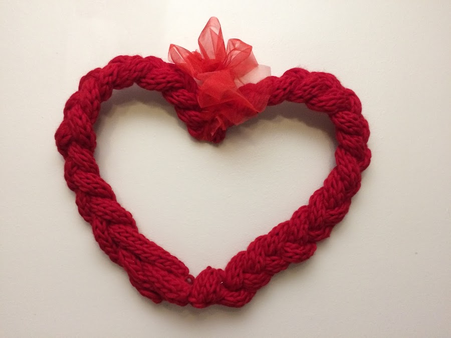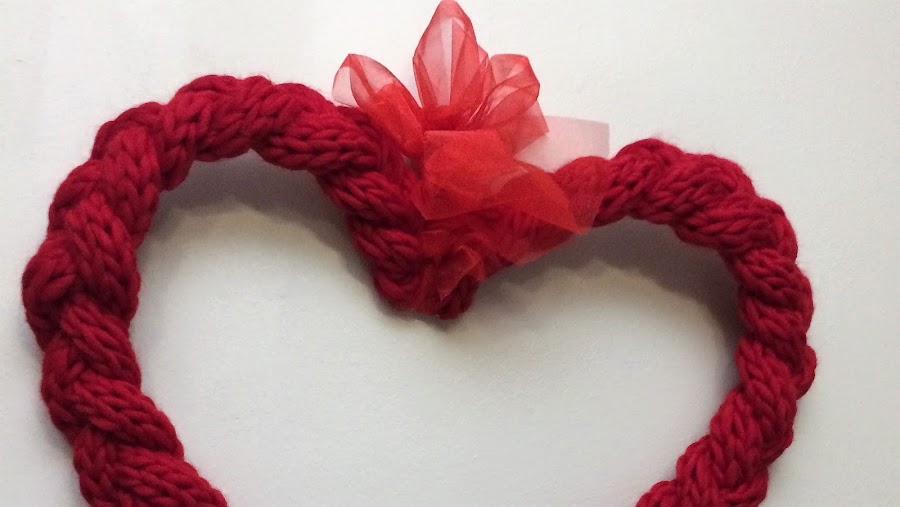 Nuestro Corazón estaría terminado, solo nos queda poner el lazo, bien podemos poner un metro de lazo atado en la parte de arriba del corazón o bien o como he realizado yo, dos lazos de 50 centímetro atados y luego hacer el lazo.