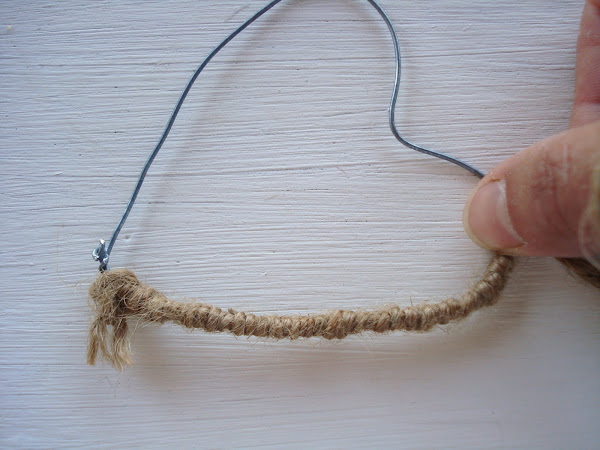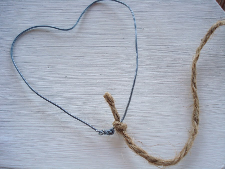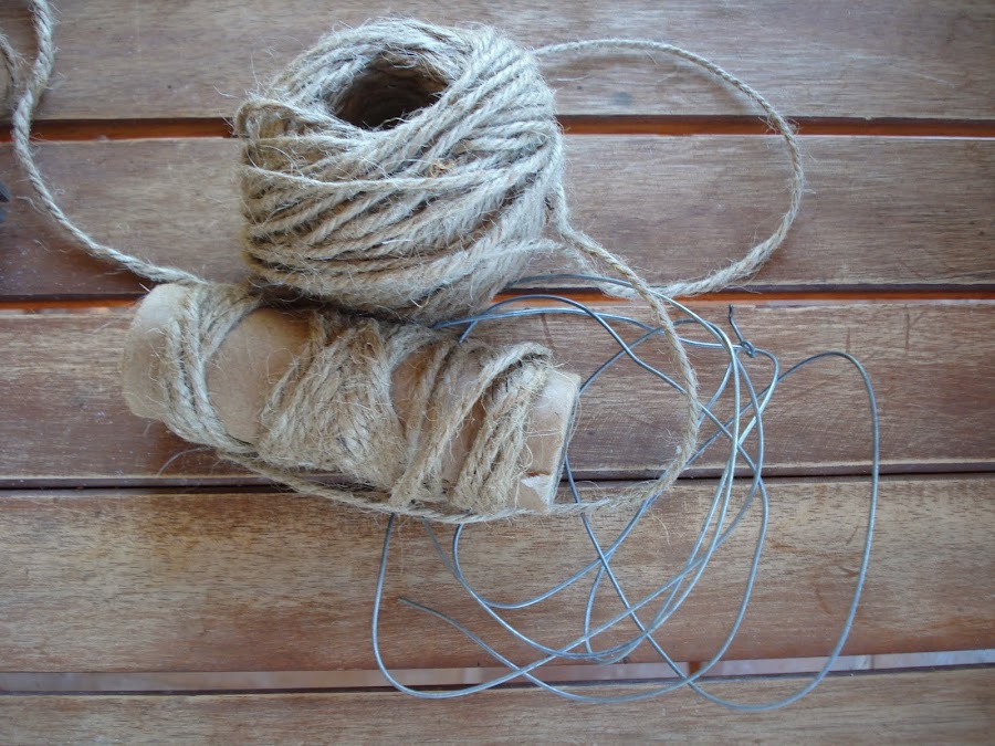 Se hace un nudo en el alambre y se enrosca el cordel.