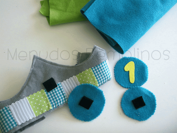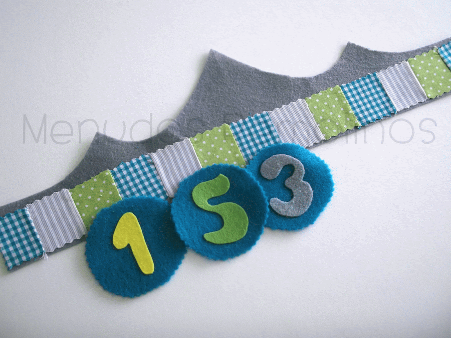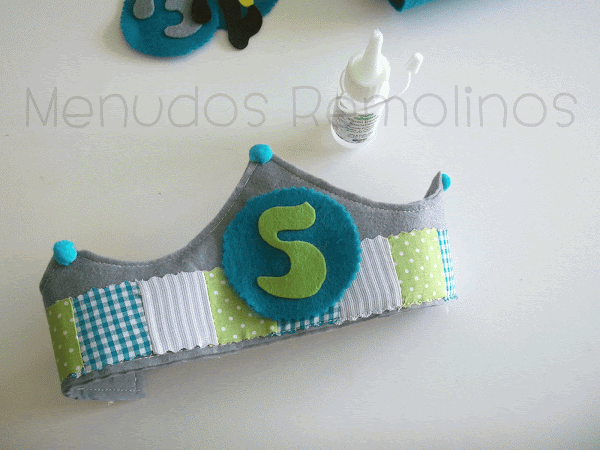 Sólo nos queda cortar unos cuadraditos de velcro adhesivo y pegarlos detrás de cada número y en la parte central de nuestra corona.