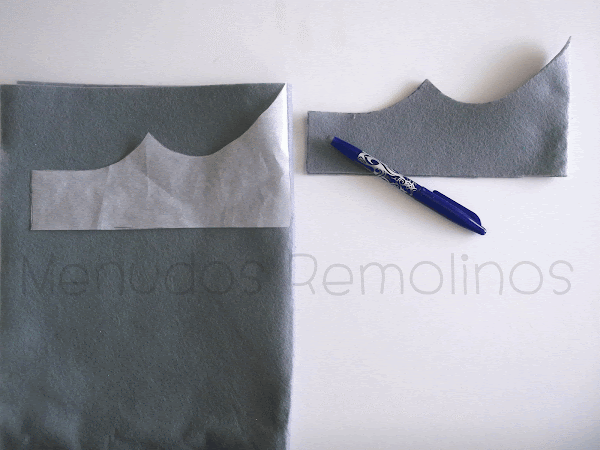 Comenzamos imprimiendo nuestra plantilla y marcándola en el fieltro. Como la plantilla es la mitad de la corona, tenéis que doblar el trozo de fieltro y dejar el doblez a la derecha. Tal y como veis en la imagen. Recortar dos veces.
