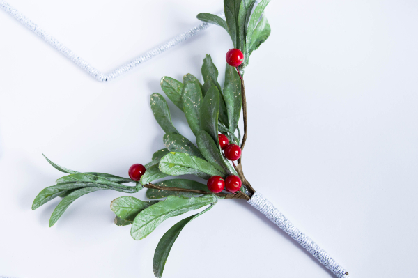 Lo primero que hay que hacer es elegir las hojas y las bayas que queremos poner. En mi caso venia una guirlanda con 5 ramitas pero me parecían demasiados, así que elegí los dos que mas encajaban a la composición que quería hacer y los deje reservados.
