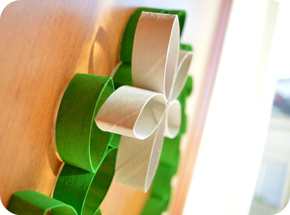 Mientras se seca la corona pegamos la flor tal y como se ve en la foto.
