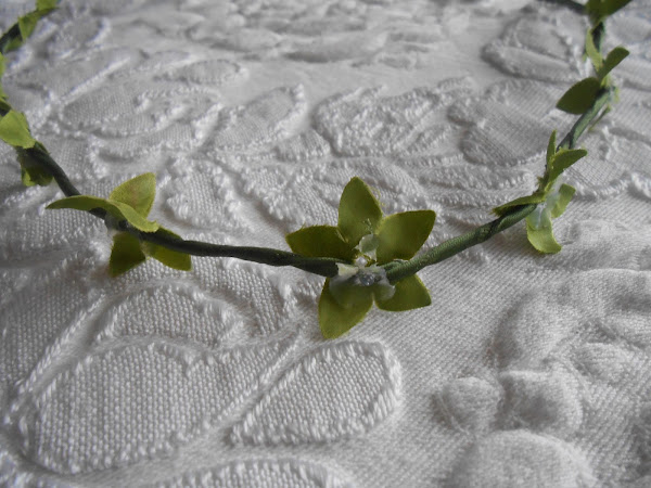 De nuestra corona ya comprada, como tenía florecitas, se las quitamos, y lo que nos queda es la cinta. Da igual que quede un poco de silicona porque luego va a ir tapada con las flores.