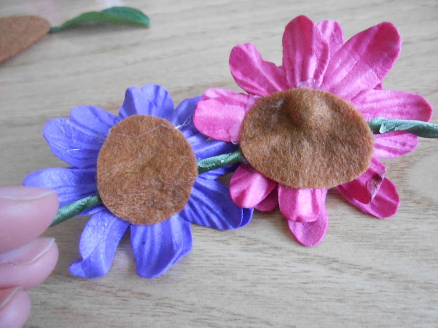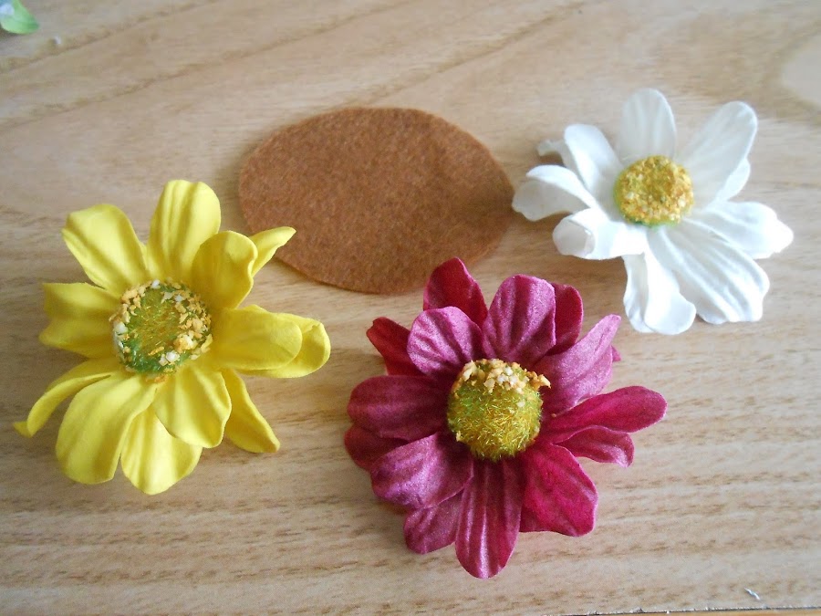El tamaño del fieltro tiene que ser la mitad de la flor porque lo que no queremos es que se vea una vez puesta la corona.