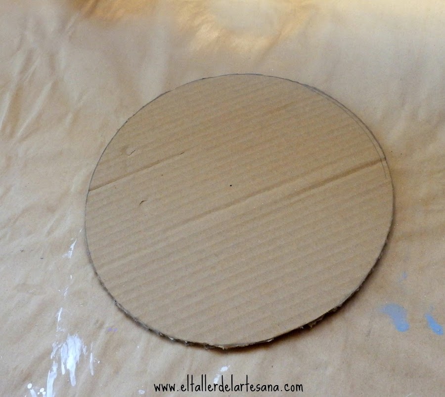 Lo primero que tenéis que hacer es cortar un círculo en el cartón con la ayuda de un plato o de un compás.