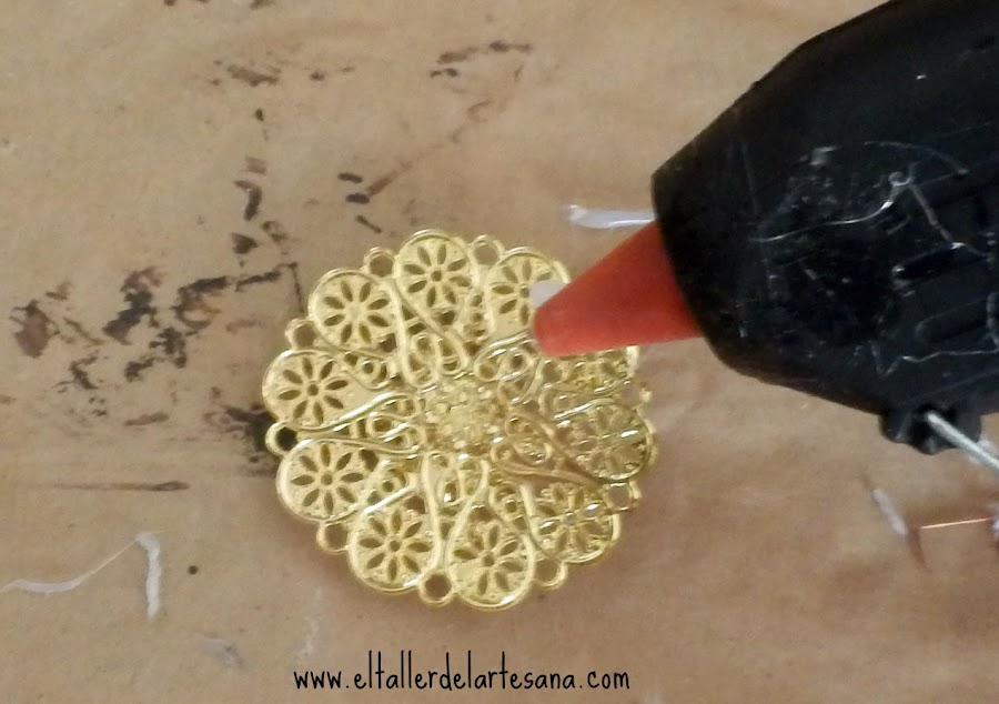 Y en la parte de atrás pegamos otro circulito de cartón. Esto irá pegado al centro de la corona.