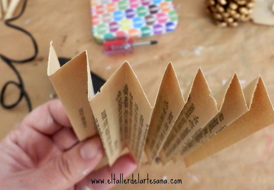 Ahora os toca hacer muchos cucuruchos con las páginas del libro.