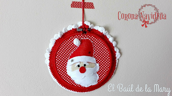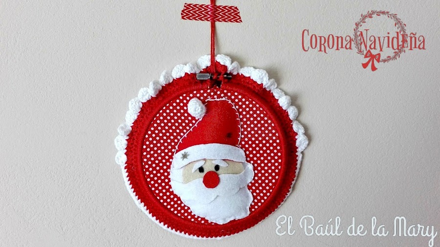 Esta es mi corona navideña, está hecha con un bastidor de base y luego, un poco de crochet combinado con fieltro et voilà!