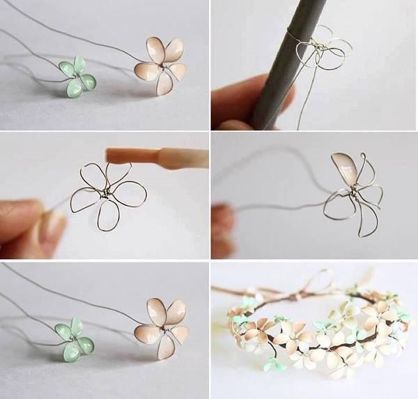 Una corona muy original para las amantes de las manualidades y mañosas, realizada con alambre y pintada con esmalte de uñas.