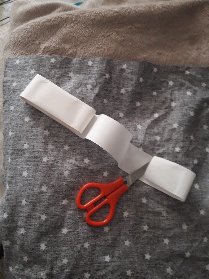 Una vez que hemos recortado el trozo de tela, tomamos el centímetro que hemos medido de más para realizar el dobladillo y que no se nos deshilache la tela.
