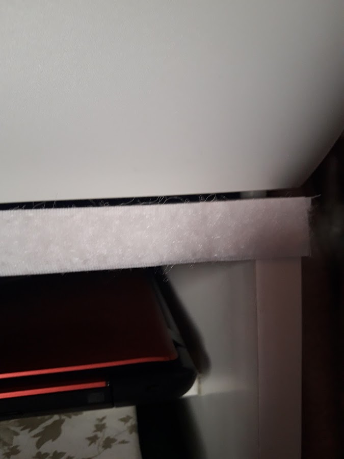 A continuación, tan sólo nos queda adherir nuestra nueva cortina a la estantería que queremos cubrir. Yo uní ambas partes con velcro, ya que me resulta más fácil por si en algún momento tengo que retirar toda la cortina. Si no vas a necesitar quitarla, puedes pegarla con un método más definitivo.