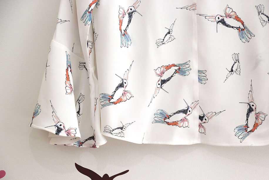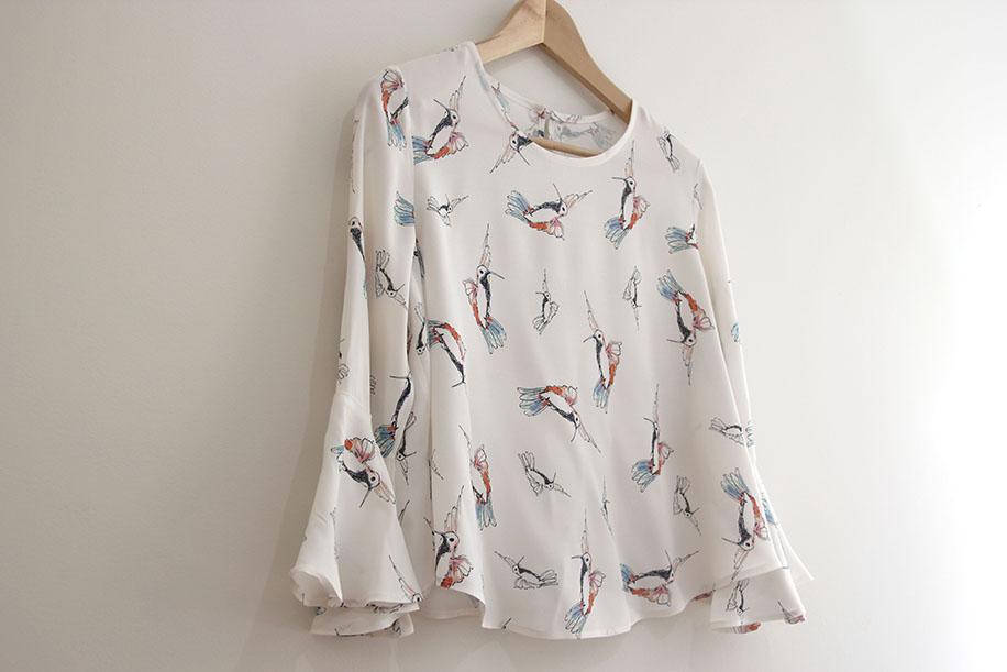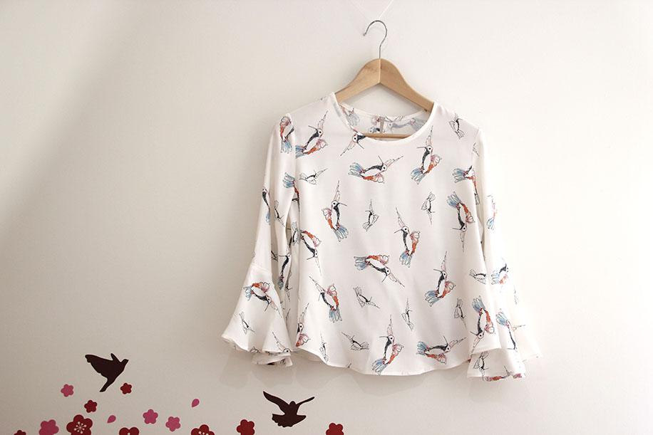 Hoy quería compartir con vosotras esta preciosa blusa de crepe, con un estampado de pájaros espectacular!!!! Además en las mangas llevan esos volantes, que ni son muy grandes ni muy pequeños, y que se llevan tanto esta temporada. Tengo que admitir que este tipo de blusas son de mis básicos imprescindibles en el armario, porque me las pongo un montón con unos vaqueros y no me lo pienso ni lo más mínimo.