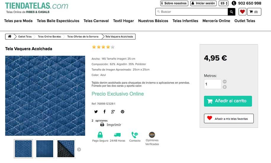 La tela que he utilizado para el chaleco es de tipo acolchado! La podréis encontrar de distintas formas, sobre todo con formas de rombos!!! Yo la compré en la tienda física de Ribes&Casals, podéis preguntar por forros acolchados, y hay en bastantes colores. En la tienda online no tienen exactamente la que yo utilicé, aunque os dejo una bastante molona y muy económica!!!! Es un vaquero o jeans acolchado preciosa