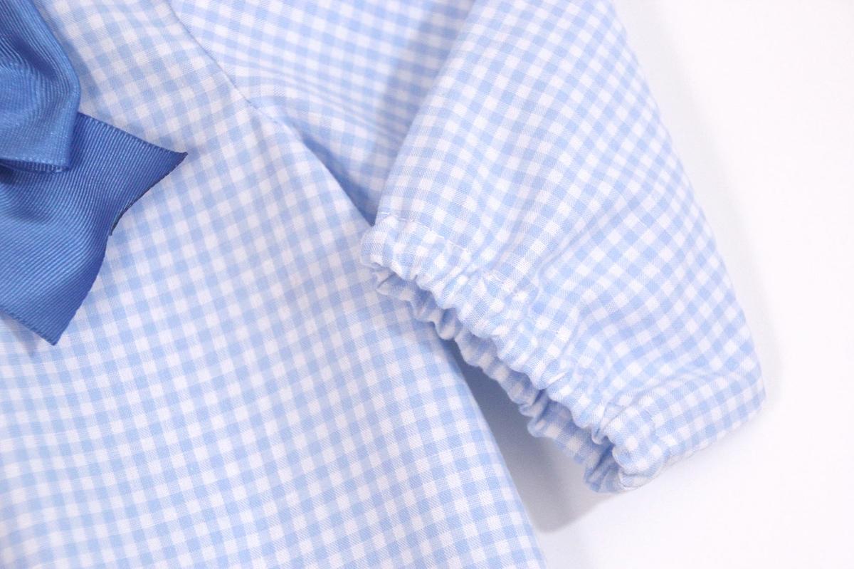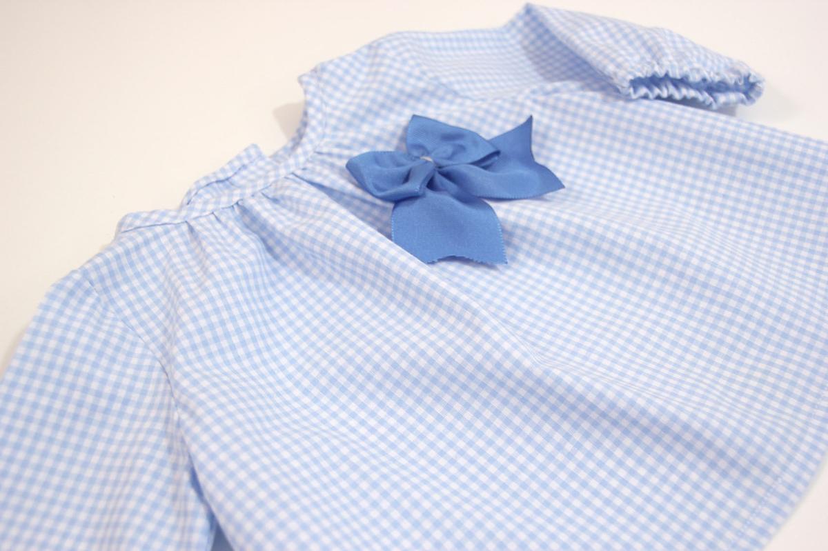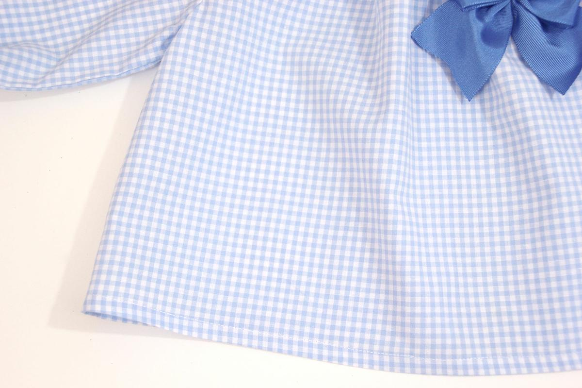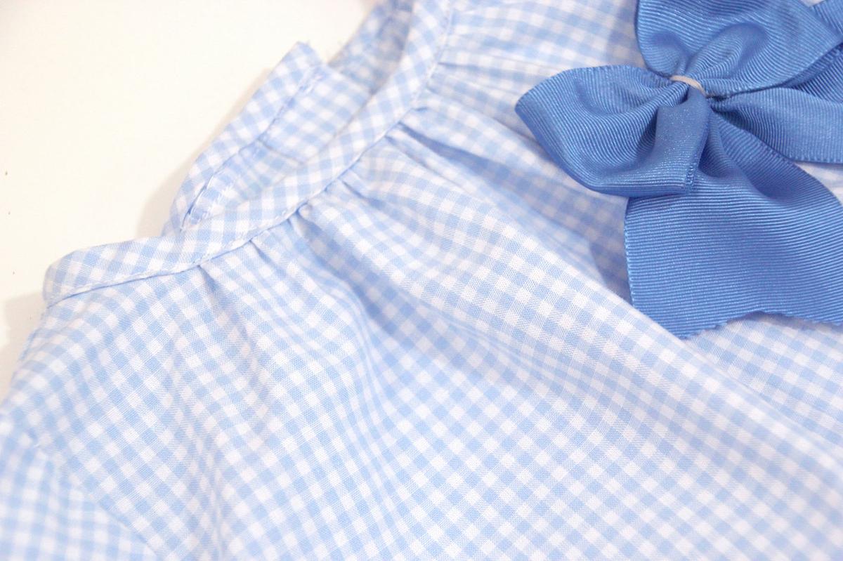 La tela que yo he utilizado es el típico vichy de cuadros pequeñitos, lo único es que os recomiendo lavar la tela previamente a la costura, porque esta tela tiene bastante apresto y encoge cuando se lava!