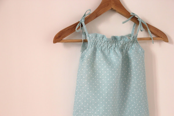 Esta tela la compré en Ribes&Casals es una tela tipo lino con pequeños lunares o puntitos estampados en color verde empolvado. Creo que me costó unos 12 euros el metro aproximadamente, y compré 60 o 70 cm, ya no me acuerdo bien porque fue hace tiempo.