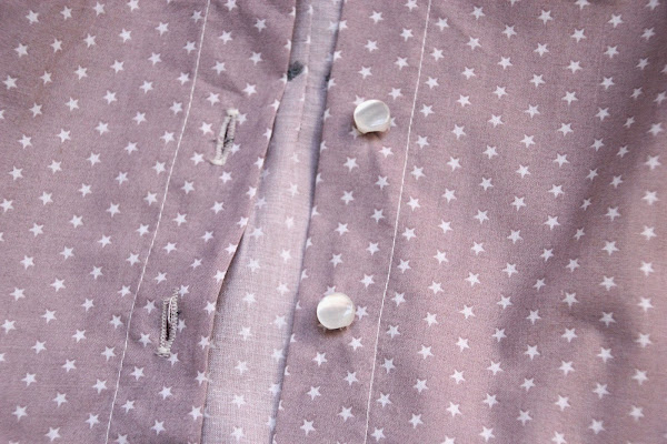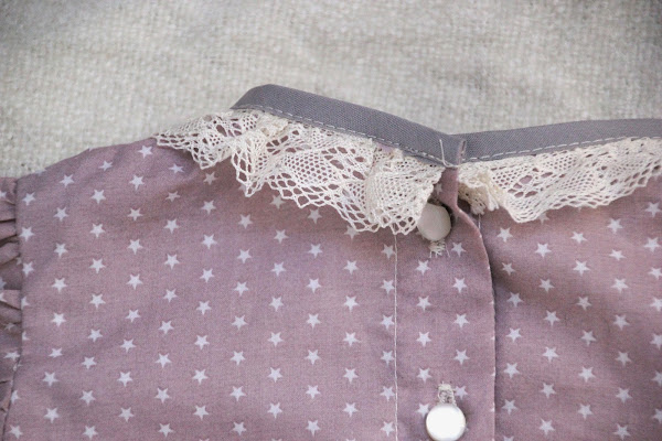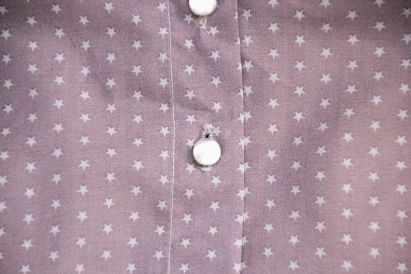 La blusa que hoy os comparto está muy a la moda para niñas bebés, comenzando por la tela, el estampado de estrellas arrasa esta temporada. Y el color rosa empolvado, que junto al gris, al verde empolvado y el blanco están por todos los escaparates de las tiendas infantiles primavera-verano. La forma del cuello, con un pequeño volante o encaje marca la tendencia en camisas.