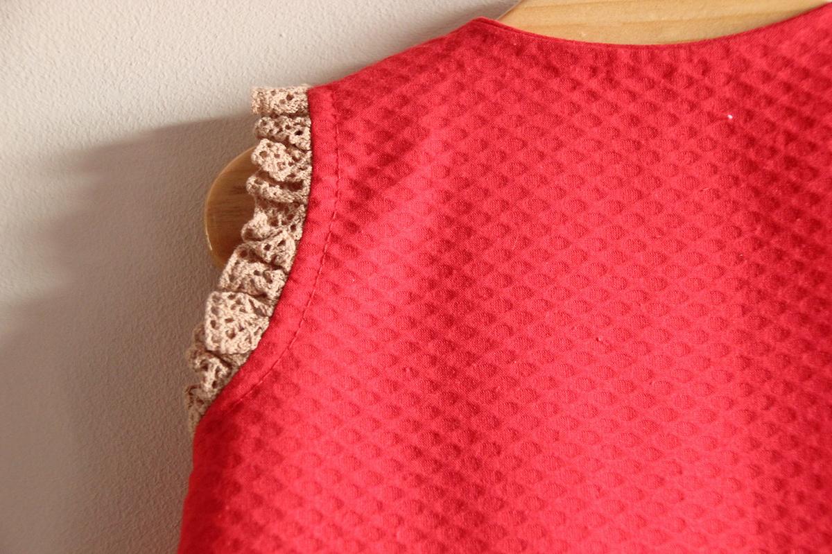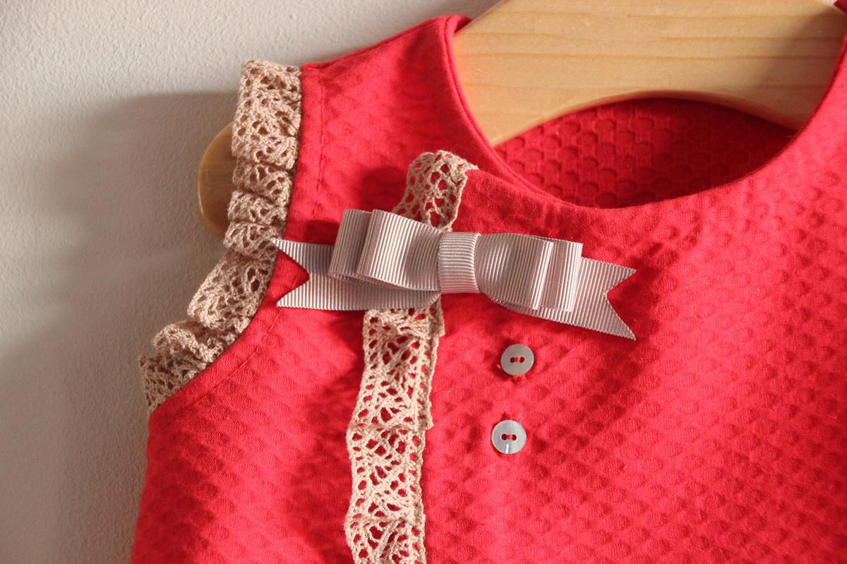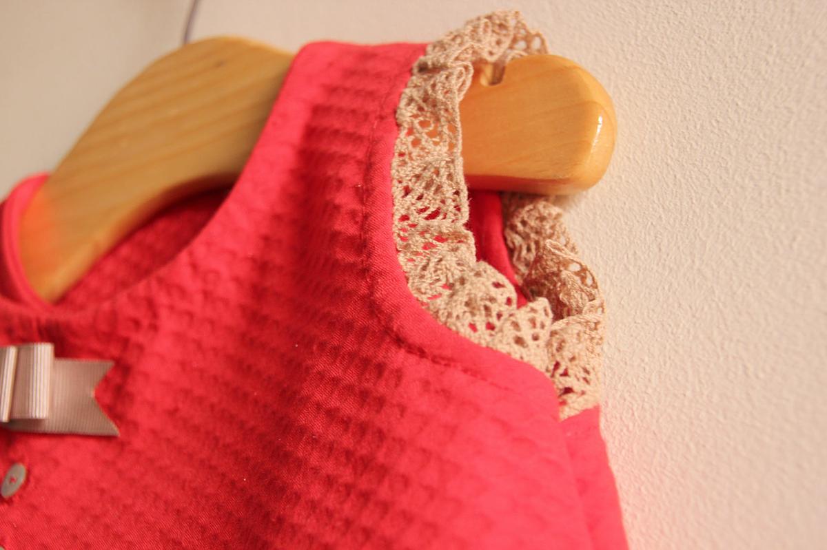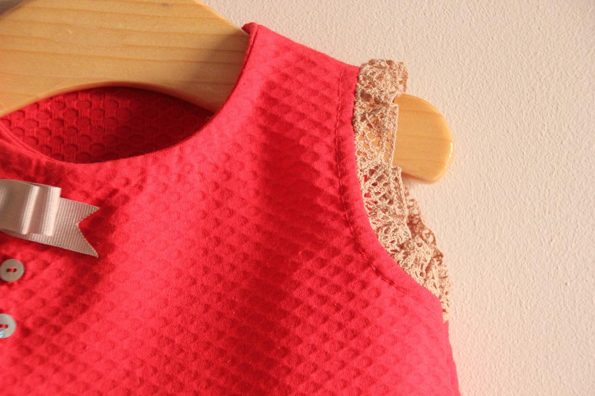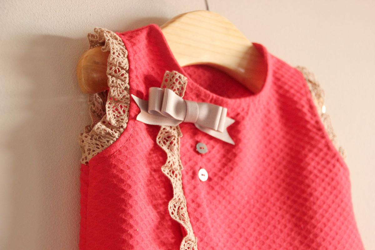 La tela con la que he hecho este vestido es de tipo piqué, que es la más tipica en cuanto a proyectos infantiles. Pero para hacer este vestidito podéis utilizar: viyela, algodón, voile, plumeti…. y casi todos los tipos de telas infantiles que os imaginéis. Esta tela la compré en tiendatelas.com.