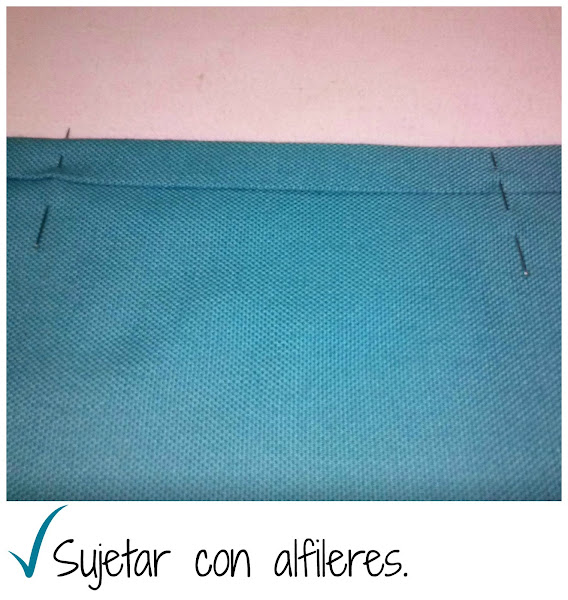 Una vez que hemos marcado los dobladillos, orillos, o como prefiráis llamarlos, con la plancha, es el momento de sujetarlos con unos alfileres para que el trabajo que acabamos de hacer con la plancha, no se pierda