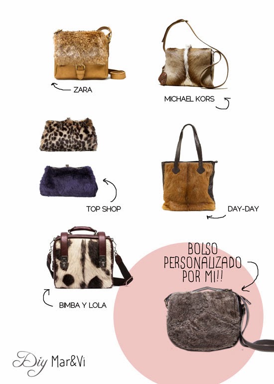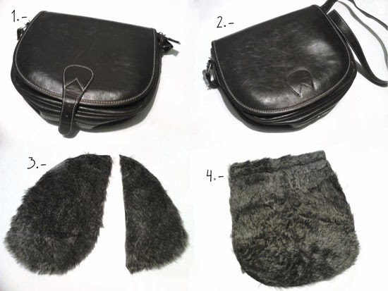 Esa primavera los bolsos de pelo volvían con fuerza y se me ocurrió transformarlo con un poco de tela de pelo.