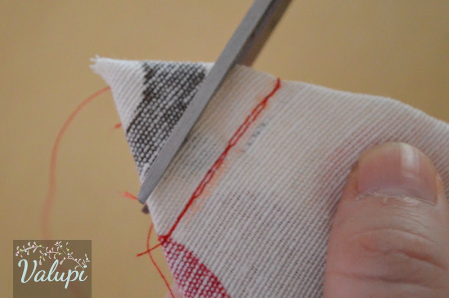 Giramos la tela para que el derecho de la tela quede dentro y repetimos los mismos pasos con el otro lado. Ya va cogiendo la forma :).
