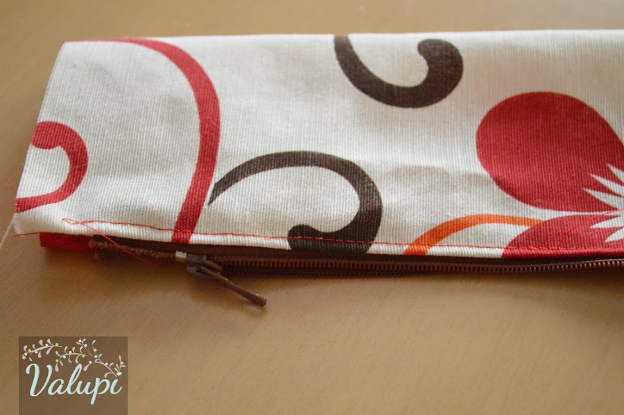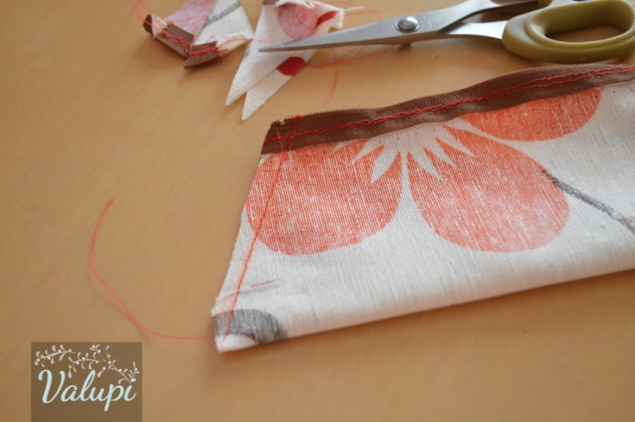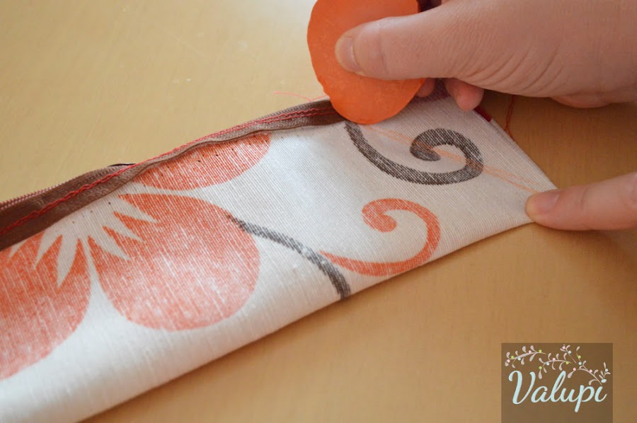 Abrimos la cremallera para poder darle la vuelta luego. Cosemos por la línea que hemos marcado y recortamos la tela sobrante.