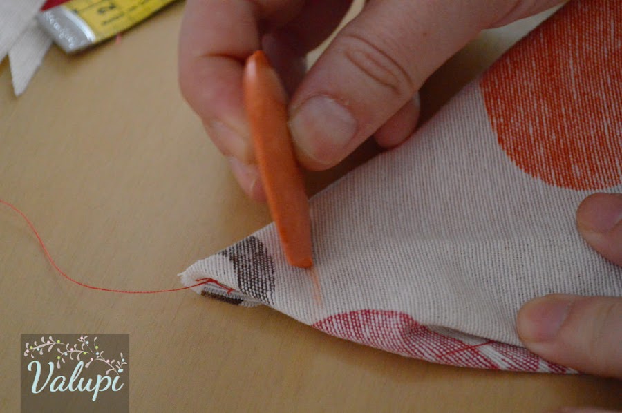 Cosemos por la línea y cortamos la tela sobrante.