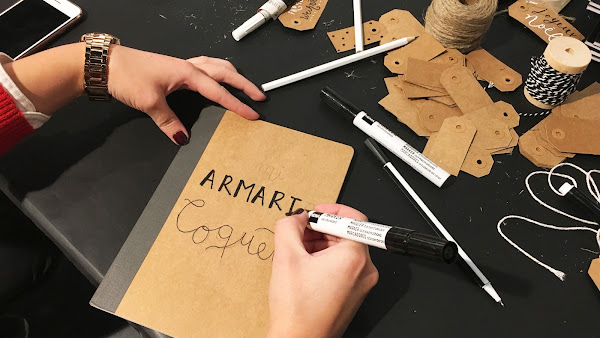 A partir de una libretita craft y 3 tipos de rotuladores (todo lo puedes encontrar en HEMA), creamos el cuaderno con el mensaje que más nos gustaba. En mi caso, puse el nombre de blog. Os cuento el paso a paso: