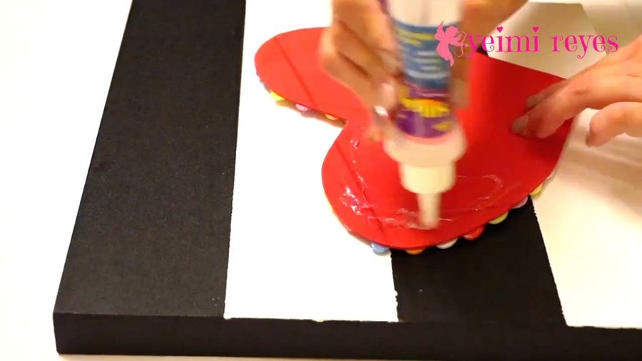 Pega el corazón al cuadro y termina de decorarlo