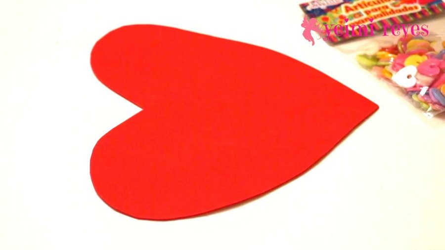 En el tiempo de secado empezaremos a elaborar la decoracion del cuadro, corta un cuadro de 22 x 22 cms utilizando el foamy rojo, doblalo a la mitad y dibuja la mitad del corazón o bien sobre el cuadro completo dibuja el corazón.