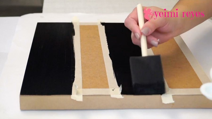 cuando seque la ultima capa retira la cinta, y repite los pasos anteriores para el color blanco con este requeridas 3 capas de pintura si el lienzo es de madera.