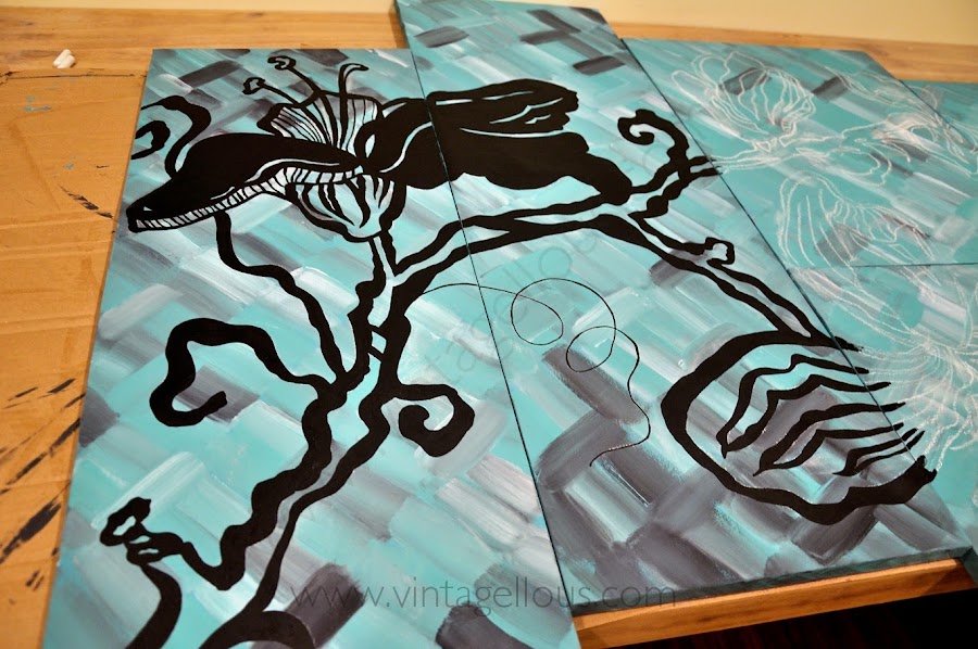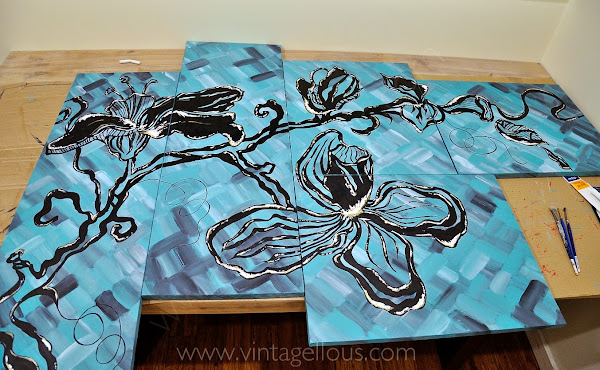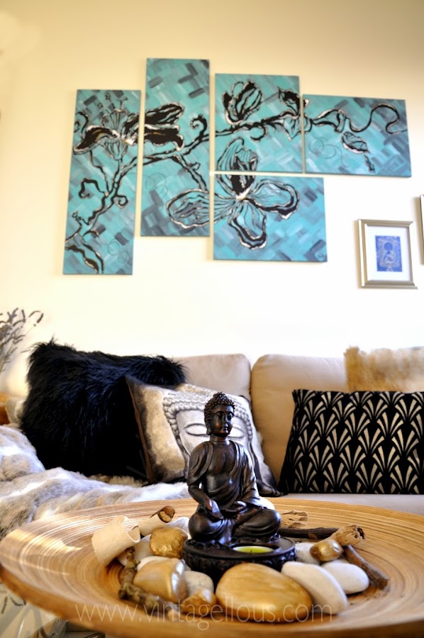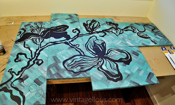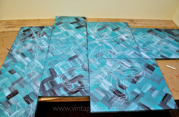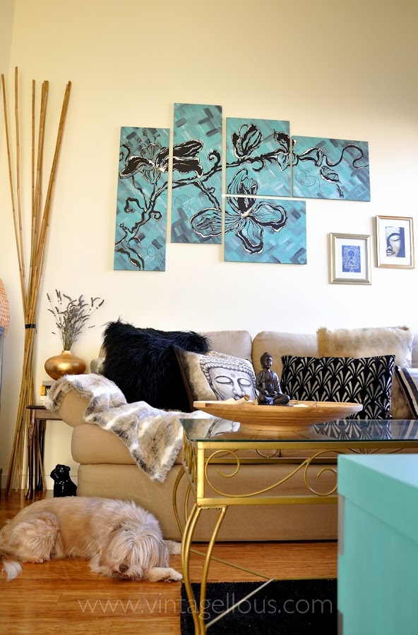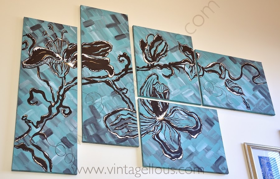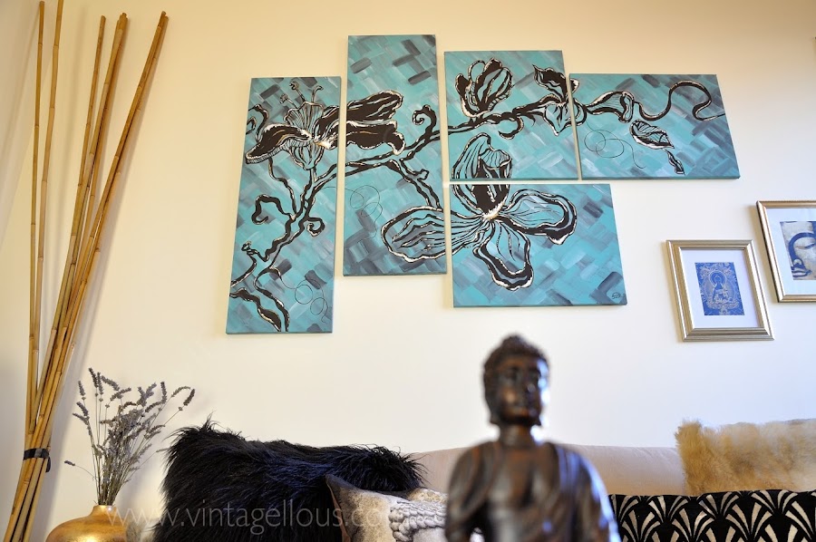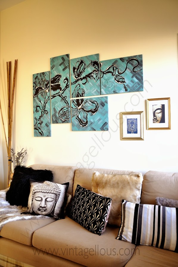 Y listo.. ya solo fue colgarlo en la pared con unas pequeñas separaciones entre cada lienzo. Y aquí tenéis el resultado final, ¿qué os parece?.