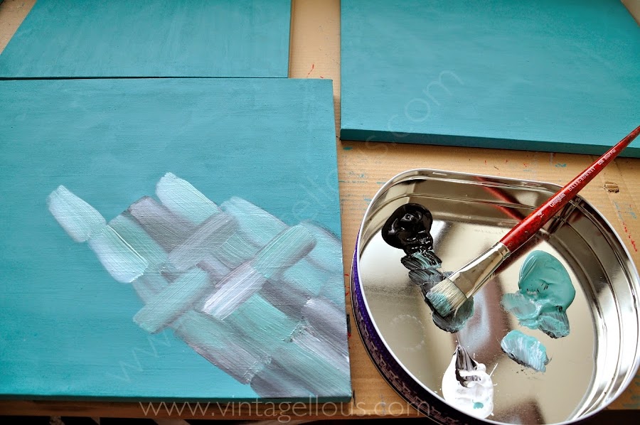 Hoy queremos compartir el proceso creativo que seguimos para éste cuadro formado por cinco lienzos. Una forma muy sencilla y económica para decorar. Para el proyecto reutilizamos unos lienzos que ya teníamos de diferentes tipos y dibujos que estaban ya pasados de moda..en su día costaron muy baratos por lo que no nos importo modificarlos.
