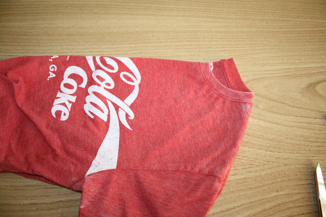 Le cortamos las mangas. Sin miedo. Estas camisetas son para la playa así que olvidémonos de dobladillos, cenefas y mucho menos, que estén perfectas. ¿Lo tienes? Debería quedar algo así.
