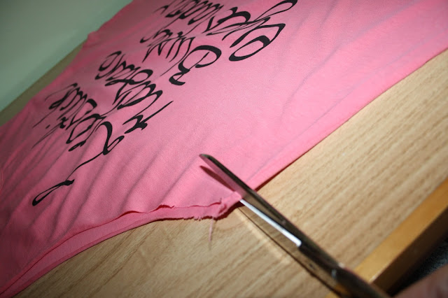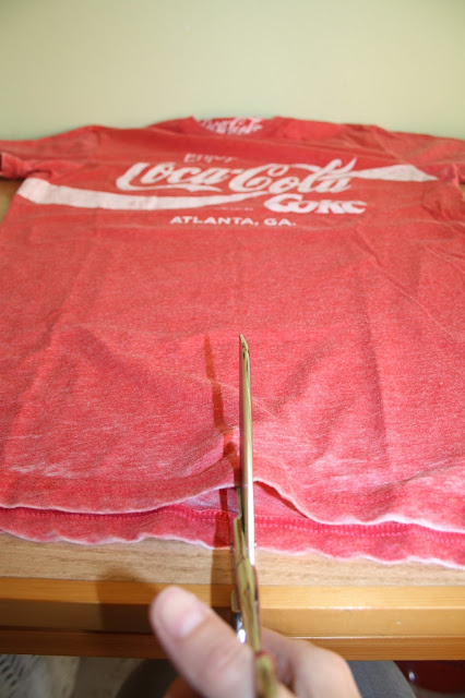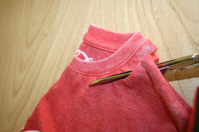 Le damos la vuelta a la camiseta y cortamos la parte de la espalda para equilibrar el largo.
