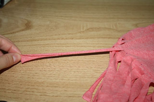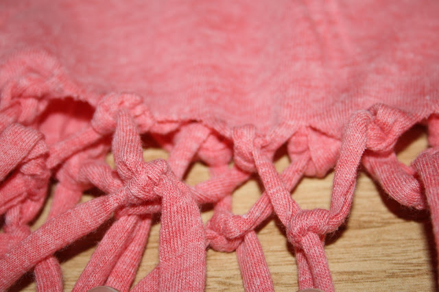 Después cortamos la costura que une los flecos y hacemos dos nudos simples.