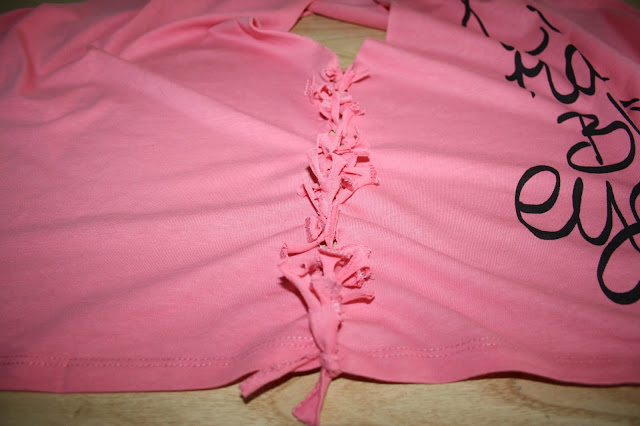 Cuanto más profundo sea el corte, más arriba te quedará el anudado así que prueba la camiseta si es necesario para saber hasta donde quieres que llegue.