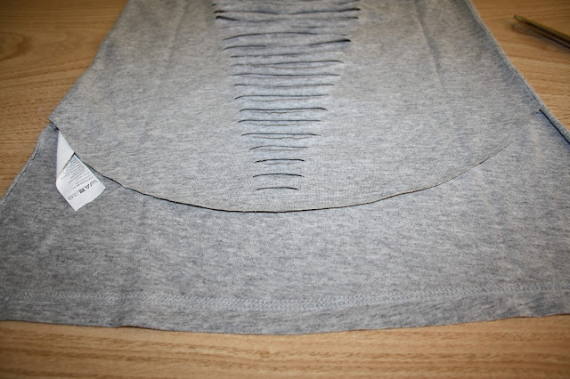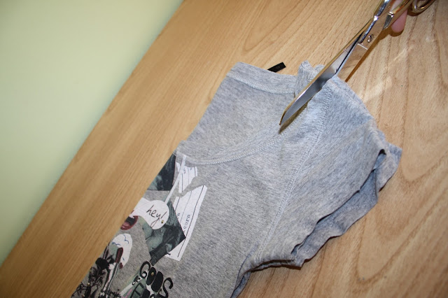 Y por ultimo, a esta camiseta que veis, le vamos a cambiar la espalda con unos simples cortes. Ya veréis qué mona nos va a quedar.