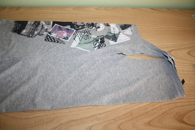 Supongamos que tenemos una camiseta bastante grande: de esas que se llevan muy flojitas o bien una que hayas robado a tu chico. ¿Que hacer? Facilísimo.