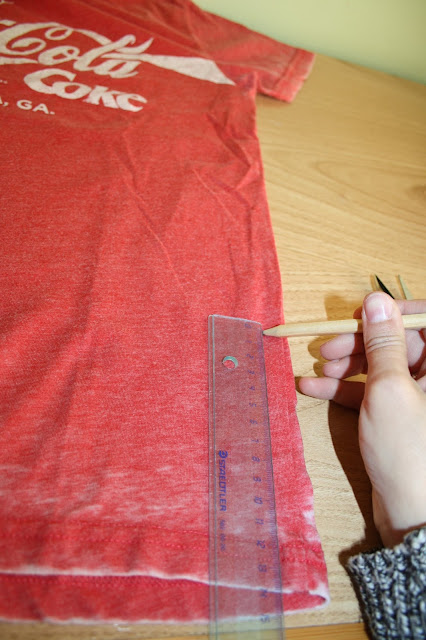 Hacemos dos marcas exactamente iguales en los laterales de la camiseta.