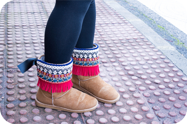 El año pasado ya se llevaron muchísimo y este otoño-invierno van por el mismo camino. Yo me he decantado por ponérselos a mis Uggs por que creo que este estilo étnico le va de perlas, pero lo bueno de ser "de quita y pon" es que podemos ponerlas a todas las botas que tengamos, y si un día no nos apetece usarlo pues lo quitamos y listo. Me decante por ese sistema de fijación por eso mismo, para no condicionarnos, y ademas con un solo par podemos usarlos en todas las botas o incluso intercambiarnoslos con alguna amiga que también se anime a hacerse los suyos.