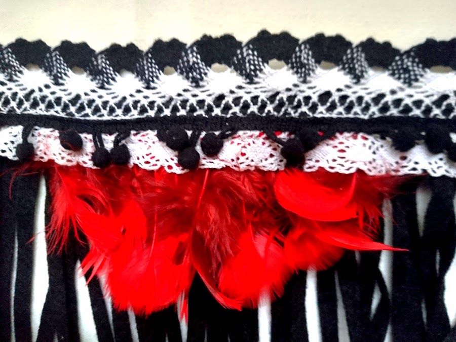 Como el trozo que ocupan las puntillas y las plumas no cubre todo el fieltro, vamos a aprovechar a hacer unos flecos con el trozo sobrante. Yo los marqué con ayuda de tiza para tela a una distancia de 0.5 cm y los corté con ayuda de las tijeras procurando no torcernos.